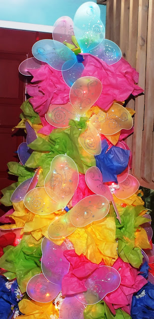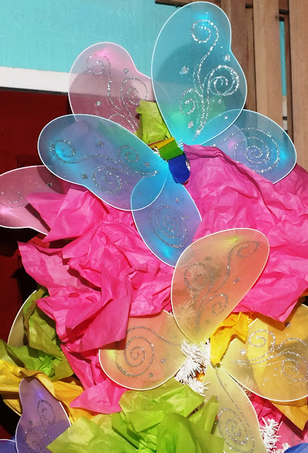 I promised earlier that I would share the total cost of this project with you. So without any further ado, the total to decorate this space was a meager $22.47 tax included. I used fourteen fairy wings and seven packages of tissue paper. Did I mention, I used every single sheet of tissue paper?