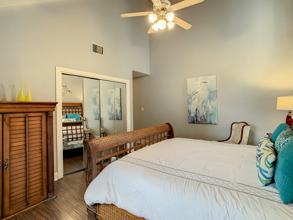 The Master is right off the foyer. The high ceilings and the natural light makes the room look/feel bigger than it is.