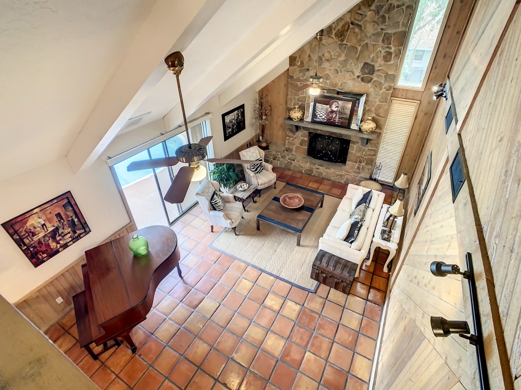 A view of the living room from the second story.