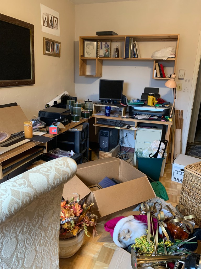 I was in tears when I started staging this room because I had no idea what to do with it. And where in the world would I put all the extra stuff.? While I was crying, sorting, and organizing, I came up with an idea; that I thought might work. We donated most of the items and discarded others. However, the remaining items needed to be stored