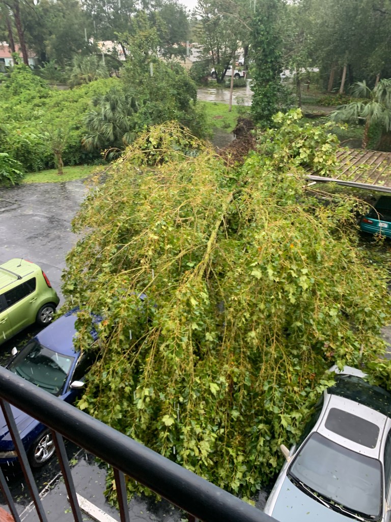 I parked my car in the parking space where this tree fell. Fortunately, I decided to move it before the weather got bad.