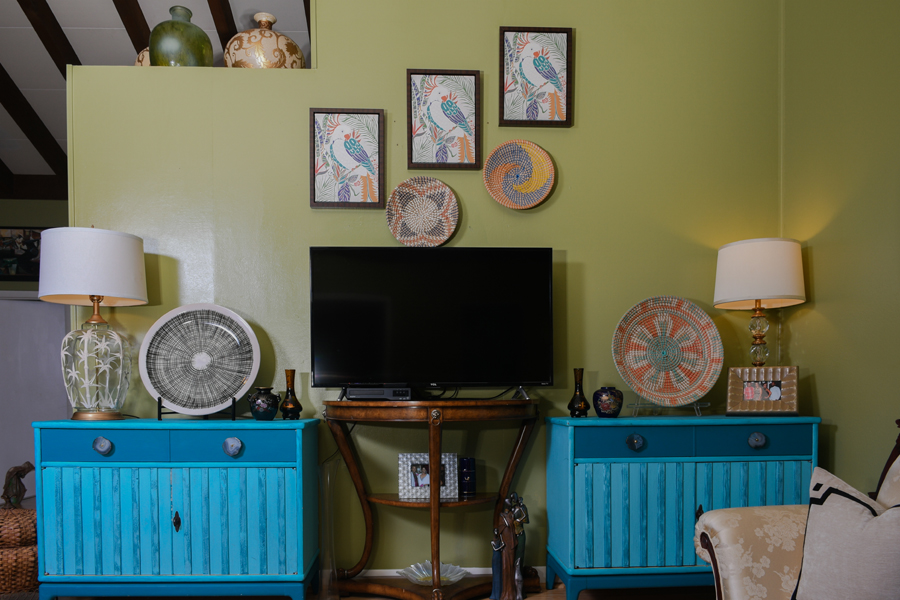 I snapped this picture with my iPhone. This is how the entertainment wall looked before I added the artwork and accessories, to the wall above the TV.
