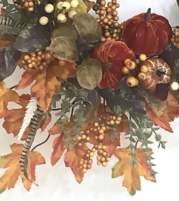 Our first stop was Walmart. I was thrilled to see a wonderful selection of fall flowers and accessories. Did I mention the affordable prices? The only items purchased to construct the wreath were two floral bushes, three velvet pumpkins/two yellow pumpkins. We didn’t have to purchase a wreath, we recycled an old one. The total cost to construct the wreath was only $17.