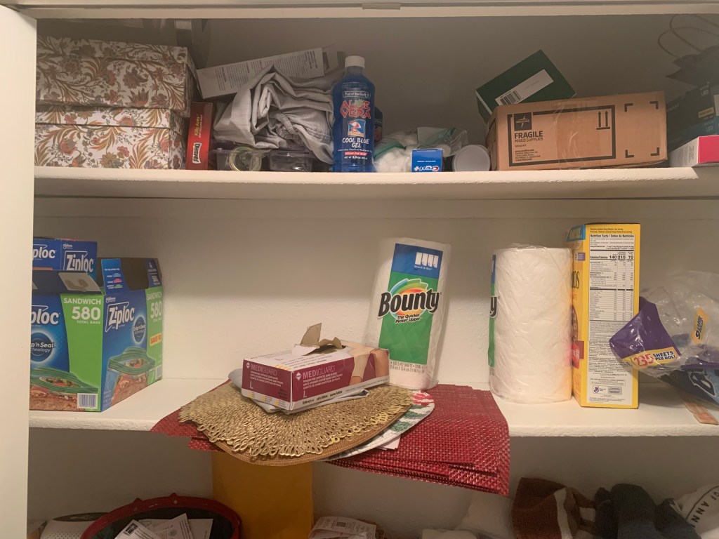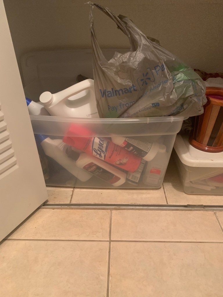 This particular closet has a lot going on. In other words, it’s wearing a lot of hats. Lol! Let’s see, we have food, first aid paraphernalia, cleaning products, and a lot of other stuff.
